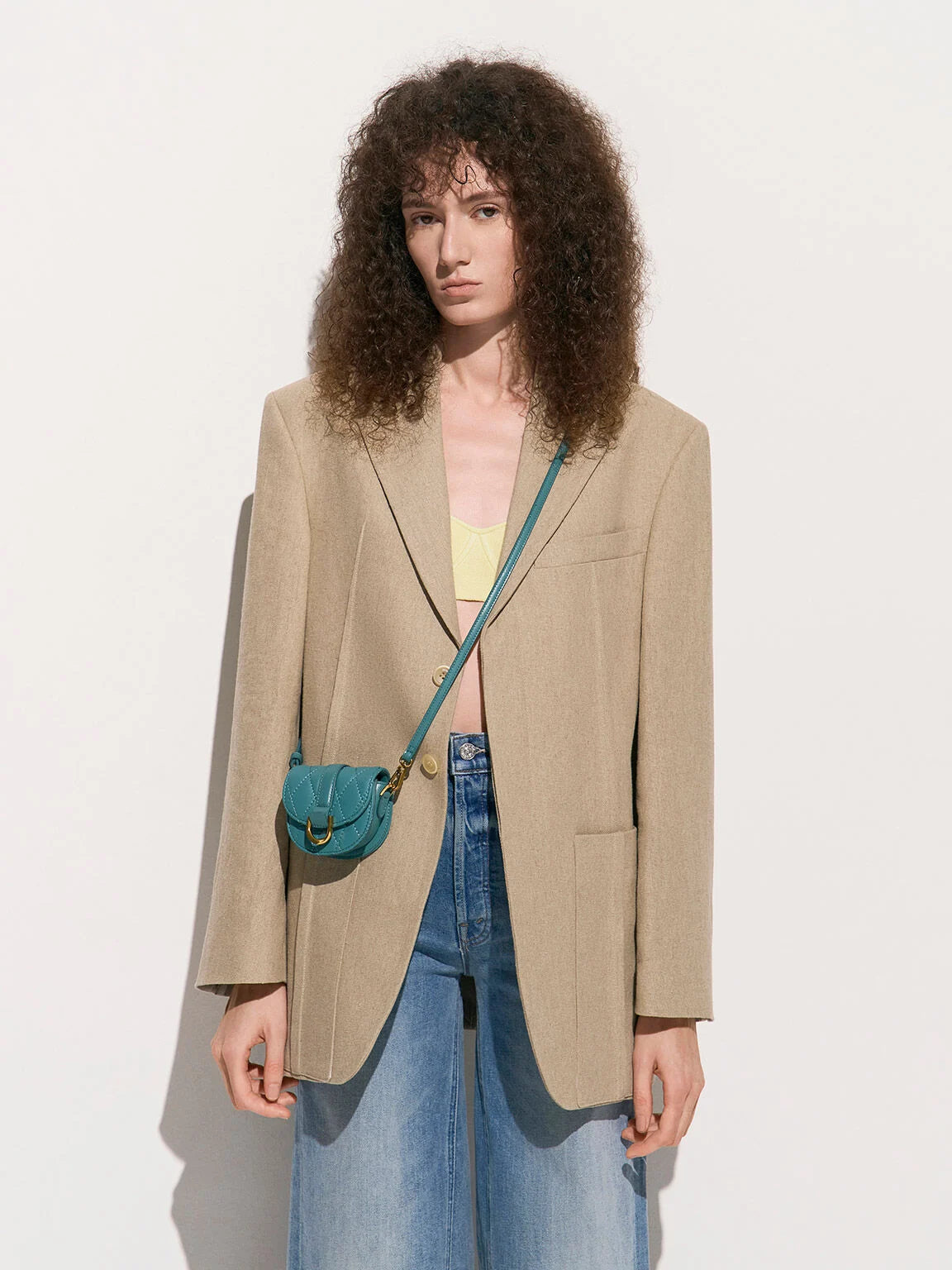 BOXED Charles & Keith Micro Gabine Quilted Saddle Bag - Teal